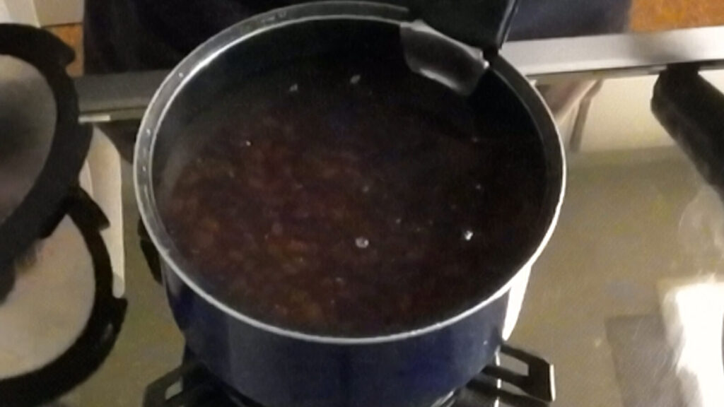 水を切った後に再度、水を小鍋いっぱいに入れ、1時間程度茹でる。