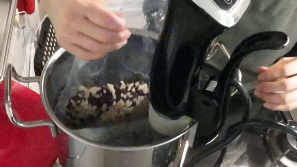 58℃で10時間低温調理したんですが、結局、小豆は柔らかくなりませんでした・・・。