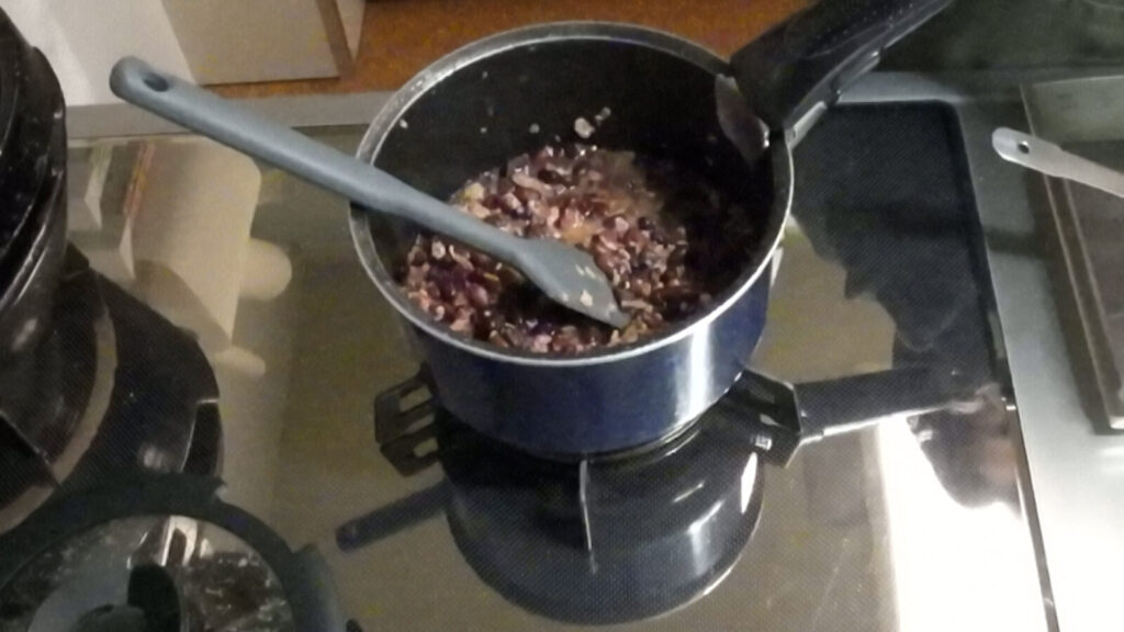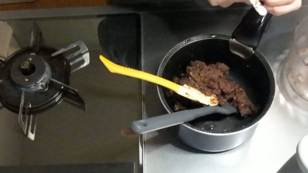 水分を飛ばし、小豆と米麹を馴染むくらい潰したいのと、砂糖を追加して甘さを追加したいから。