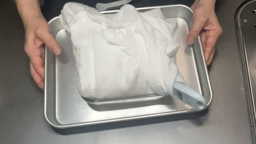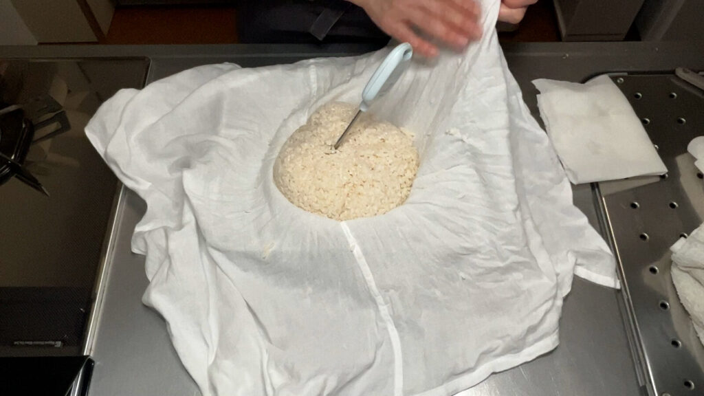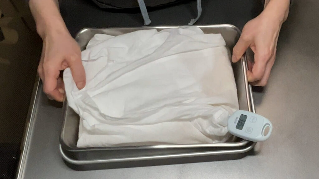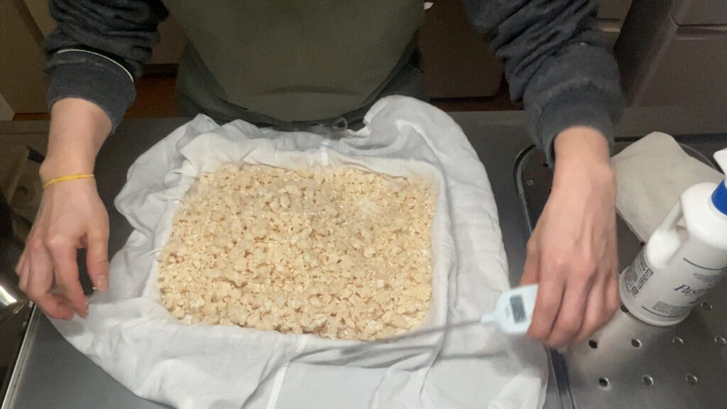 木製の麹蓋がないので、さらしを敷いたまま1回目は厚めの耐熱ガラス容器。
