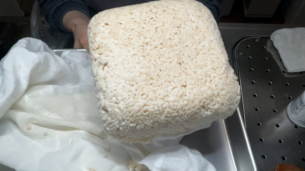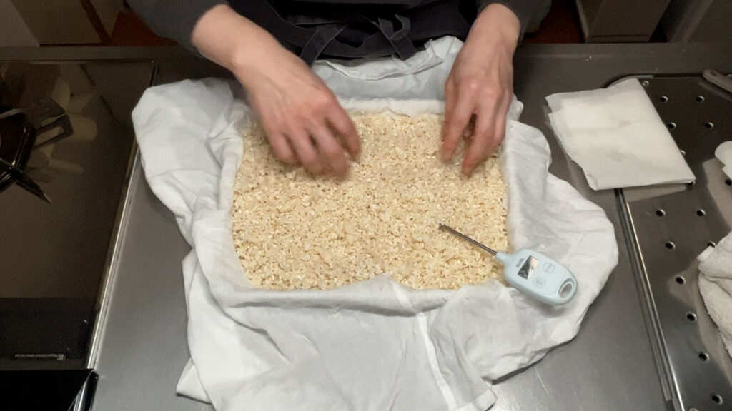 1回目の厚さだと、中のほうにまであまり麹菌が回ってないように見えました。