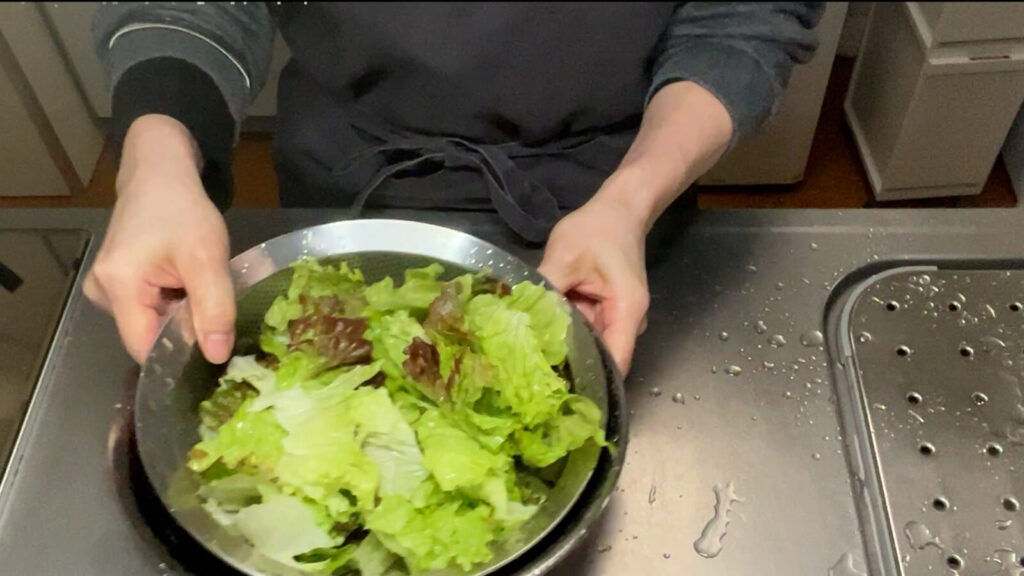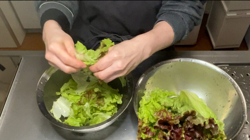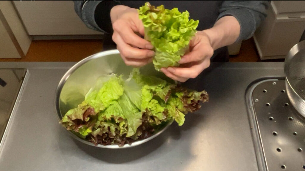 これ、私はよく、捨てるには惜しいので、レタスの外側の葉を使ってやります。