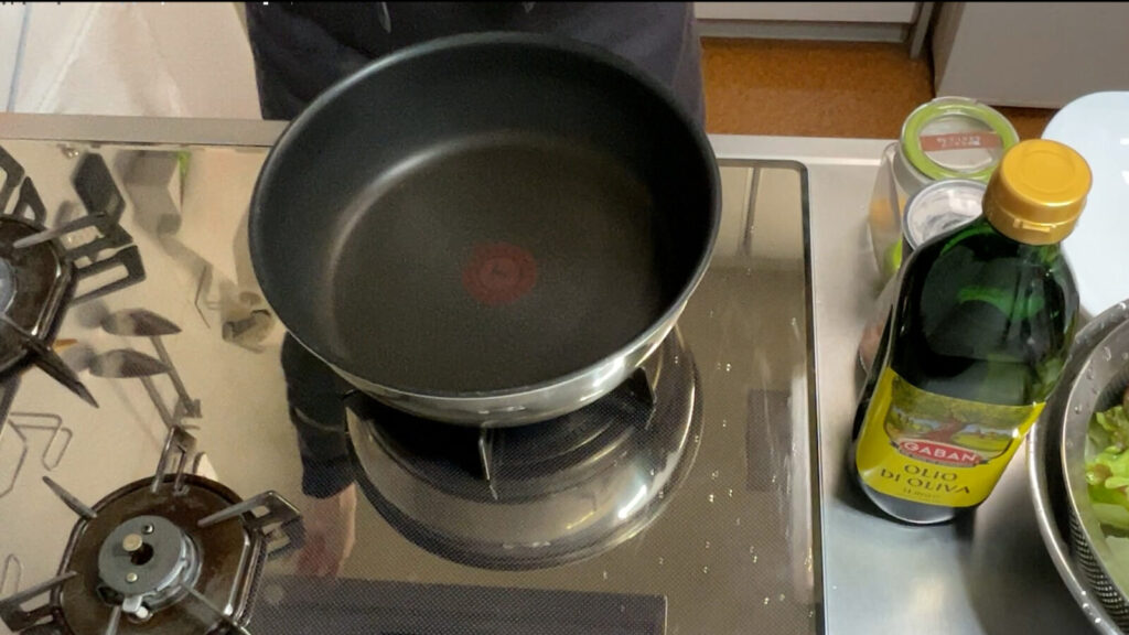 オリーブオイルと一緒に炒めて、鶏ガラスープと塩で味つけ。