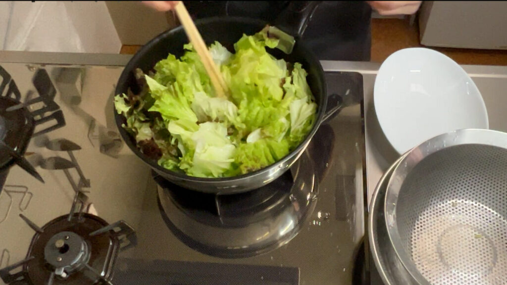 サニーレタスは柔らかいので普通のレタスのように炒めたりはできないもんだと勝手に決めつけていたけど、意外でした。
