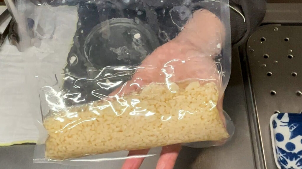 味見してみてもやっぱり、上の甘酒よりは甘いです。