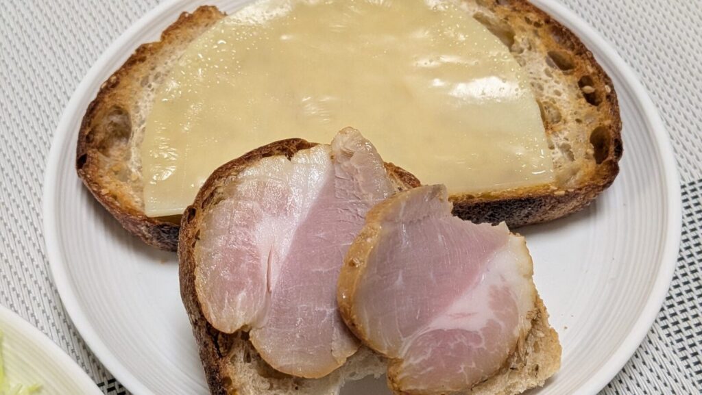 出来上がった豚ハムはパンにもよくあっていて、意外なことに、カップ麺(そば)に入れてもめっちゃ美味しかったです。