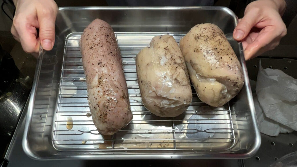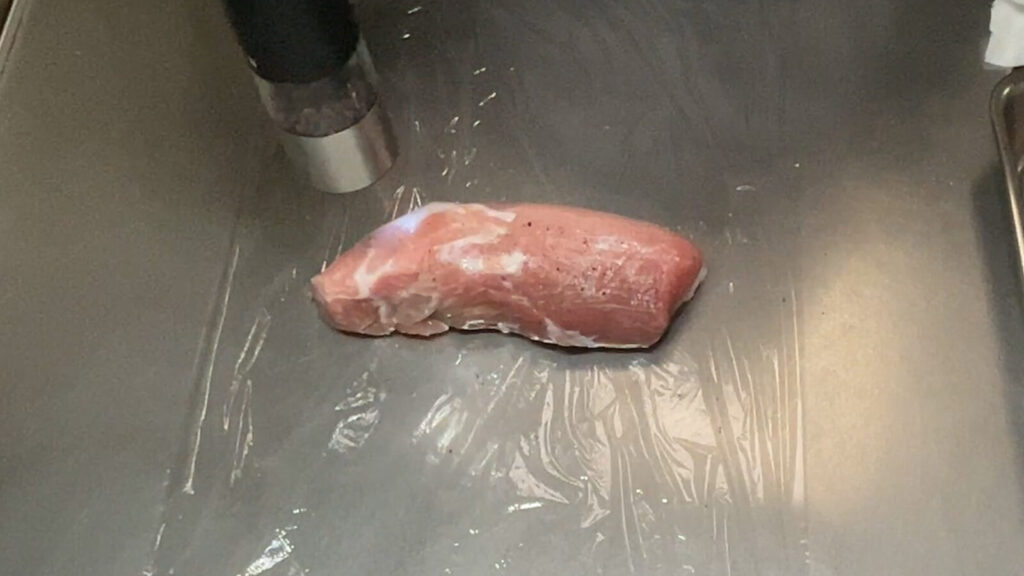 低温調理するときは、表面を軽く洗い流して、水気を切って、ブラックペッパーをふりました。