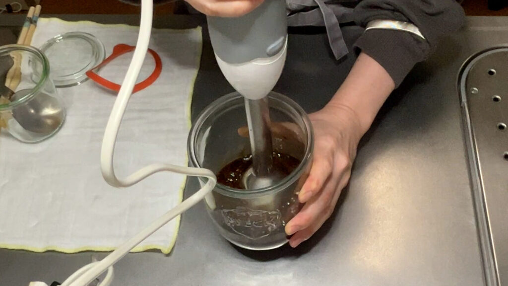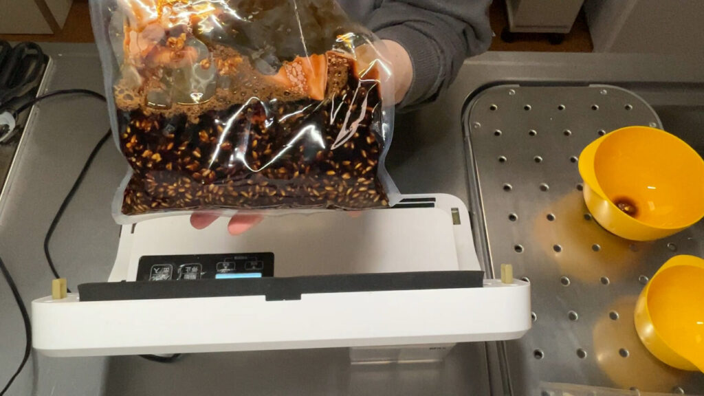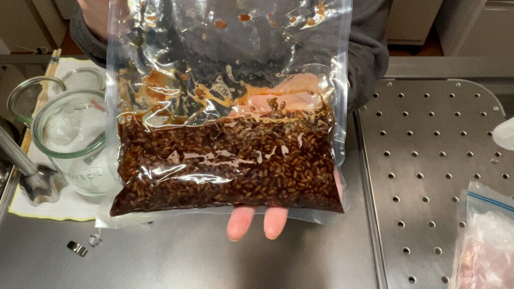 手作り生米麹を使って低温調理器を使い、スピーディーに醤油麹を作る