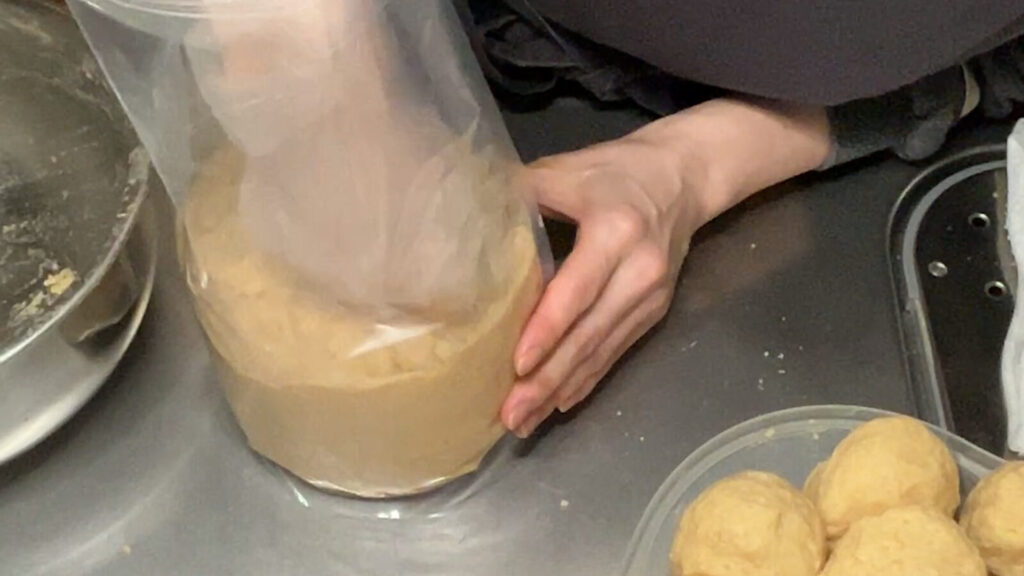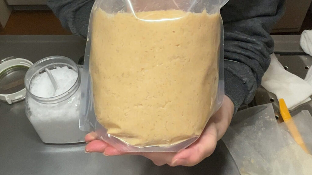 うちには味噌を入れるための琺瑯の容器が二つあるのですが、さすがに買い足すのも気が引けるので、今年は、新に厚手でマチ付きのジッパー袋を購入しました。